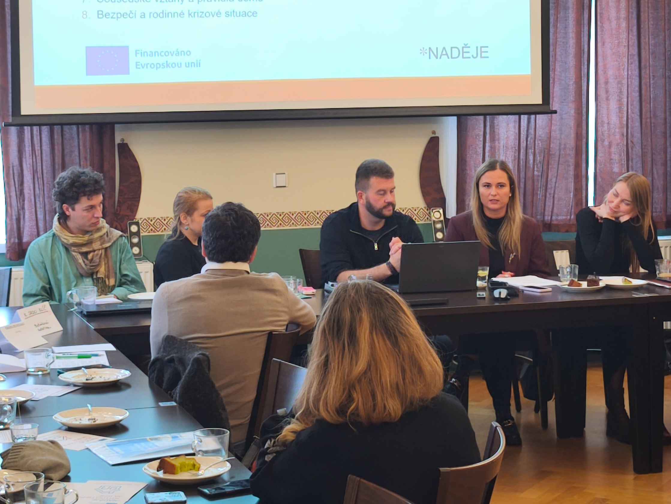 V prvním bloku se kulatý stůl zaměřil na ukrajinské rodiny s příspěvky od pracovníků našeho týmu, Jiřího Horáčka (Dobrovolnické centrum, Ústí nad Labem) a Kristýny Baše (IOM Czechia). Ve druhém bloku bylo tématem zabydlování žen bez domova se vstupy od Kateřiny Betákové (K srdci klíč, Chomutov) a Michaely Púčikové (Kontaktní místo pro bydlení, Praha 3). Diskutovalo se o praktických řešeních vybavování bytů, metodikách dobré praxe při výběru klientů, struktury realizačních týmů v rámci projektů Housing First, ale i o potenciálu nadcházejících legislativních změn.