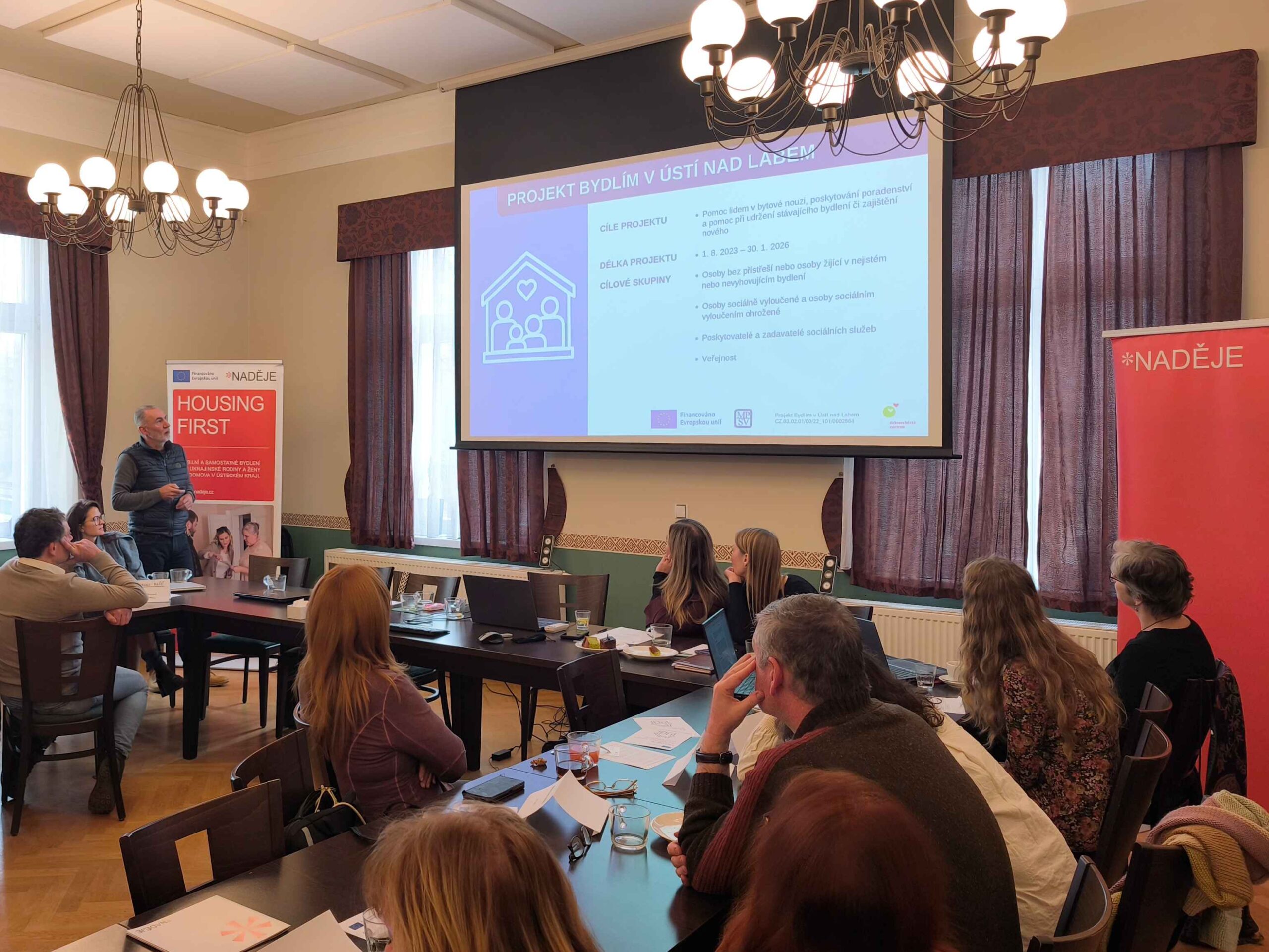 Projekt, jenž za své dosavadní působení pomohl zabydlet 22 ukrajinských rodin a 9 žen bez domova napříč Ústeckým krajem, končí v dubnu 2026. Kulatý stůl umožnil zástupcům samospráv, dalších projektů Housing First i jiných sociálních služeb sdílet podněty k zajištění funkční a spolehlivé podpory pro již zabydlené domácnosti a diskutovat budoucnost snah o zabydlování v souvislosti s implementací kontaktních míst pro bydlení.